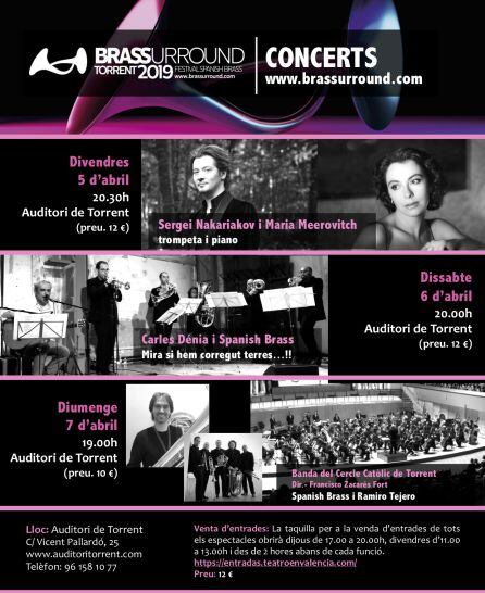 La Banda del Círculo Católico de Torrent, dirigida por Francisco Zacarés, junto a los solistas Ramiro Tejero (tuba) y Spanish Brass, actuarán el domingo 7 de abril. El repertorio del concierto incluye los estrenos de B&B Remembers y La repartició de la Carn amb para quinteto de metales y banda, ambas obras del maestro Zacarés.