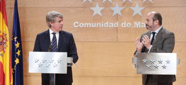 Ángel Garrido y Pedro Rollán tras la rueda de prensa del Consejo de Gobierno / Comunidad de Madrid