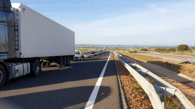 Imagen de la caravana que se ha formado a primera hora de la mañana, tras el accidente / Cadena SER