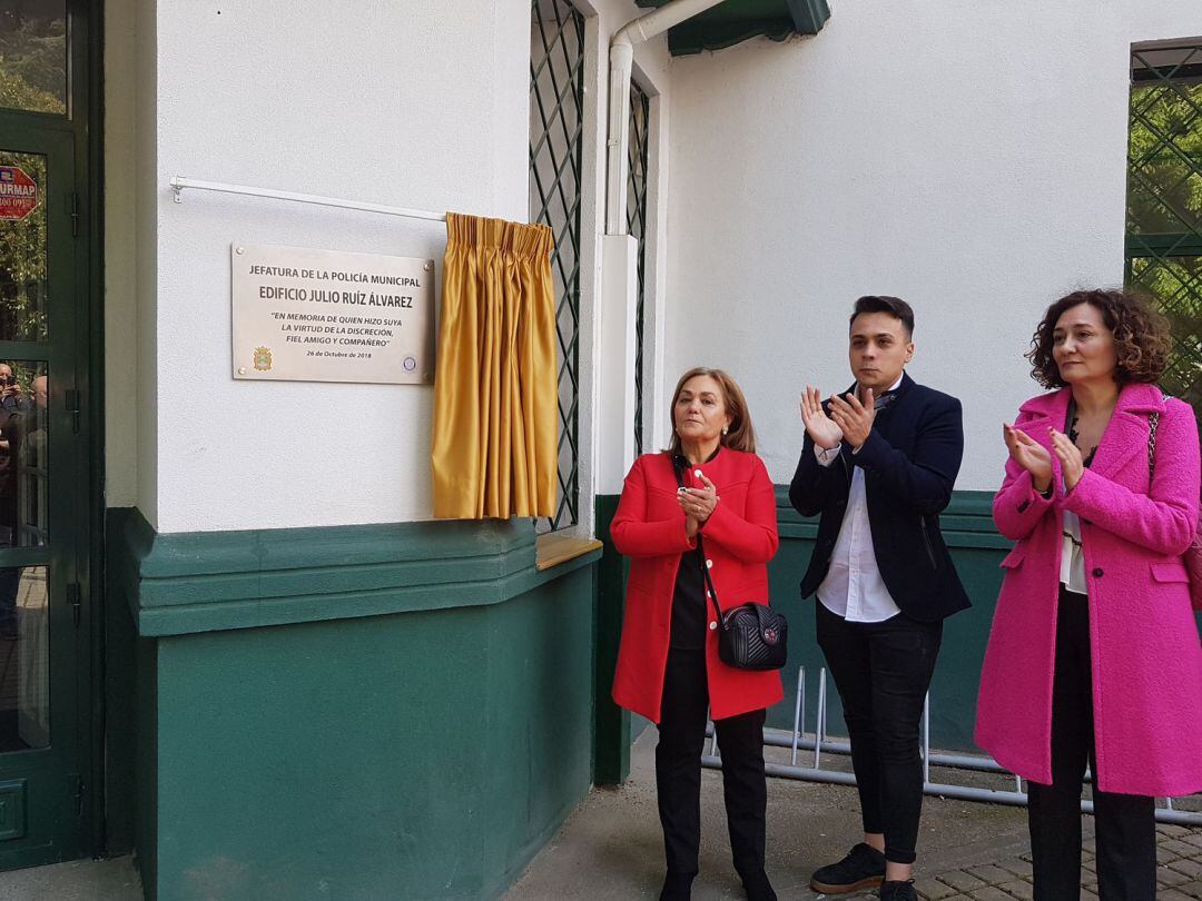 La viuda Victoria Alonso Álvarez y su hijo David Ruiz Alonso, acompañados por la alcaldesa Gloria Fernández Merayo, han sido los encargados de descubrir la placa en memoria del funcionario municipal. “Julio era bueno, creo que todos podemos decir que hemos trabajado con una buena persona. Este es un reconocimiento a su persona y a su trabajo. Para él este Ayuntamiento y este cuerpo de la Policía era su vida. Gracias a todos los grupos políticos por este reconocimiento”, ha destacado la alcaldesa.