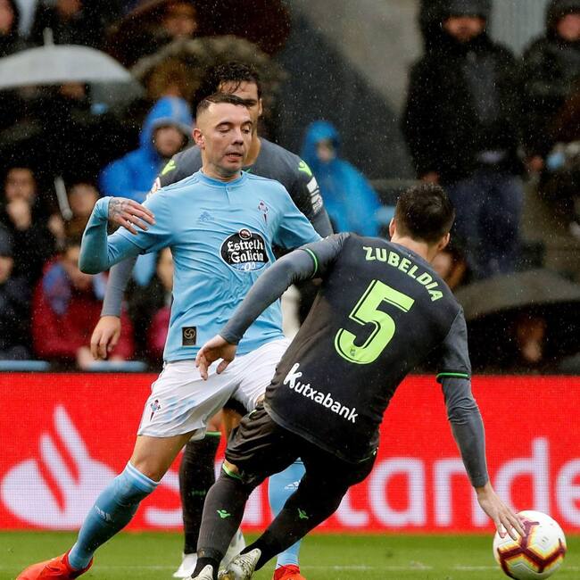 Iago Aspas intenta irse de Zubeldia / Salvador Sas (EFE)