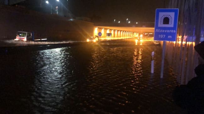 Tres vehículos quedan atrapados en el túnel de Atzavares al inundarse