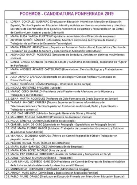 Junto a Lorena también estarán Mariló Cobo, presidenta de la Plataforma de Afectados por la Hipoteca, que expresó su intención de conseguir " una Ponferrada mejor para quienes lo están pasando muy mal porque no tienen dónde vivir".