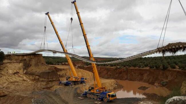 Para su recuperación, y una vez llevados a cabo los trabajos previos de topografía y acondicionamiento de la zona, se procedió a la construcción de un puente, de 85 m de longitud y 17 metros de altura, que viene a sustituir la infraestructura afectada. Dicha estructura está formada por tres vanos que salvan el Arroyo de las Tinajas. El tablero tiene un ancho de 8,6 metros para vía única, que permitirá la electrificación futura de la línea.
