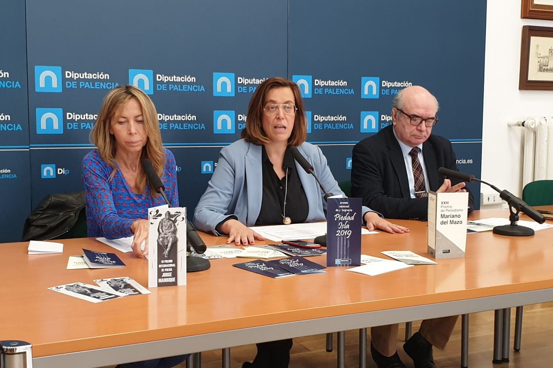 La presidenta de la Diputación, Ángeles Armisén, junto a la diputada de Cultura Carmen Fernández, ha presentado esta mañana en rueda de prensa la apertura de los plazos de inscripción a los diversos premios que convoca la Institución Provincial: Jorge Manrique, Piedad Isla y Mariano del Mazo y que premian el talento cultural y artístico vinculado a nuestra provincia.