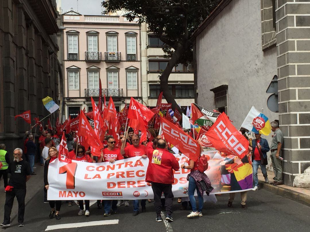 Los sindicatos salieron de nuevo a la calle este Primero de mayo bajo el lema de 'La Lucha continúa. + Derechos + Igualdad + Cohesión. Primero las personas', reivindicaciones que invadieron las capitales canarias.
