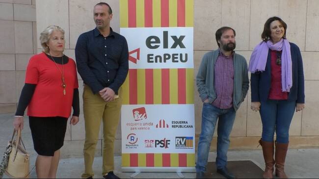 Hubo intentos de confluir con Podemos y otros partidos como Compromis y PSOE, pero finalmente no se llegó a acuerdos. Hoy se ha presentado la candidatura de Elche con la presencia de Rosa Pérez Garijo, coordinadora de Esquerra Unida del Pais valencià.