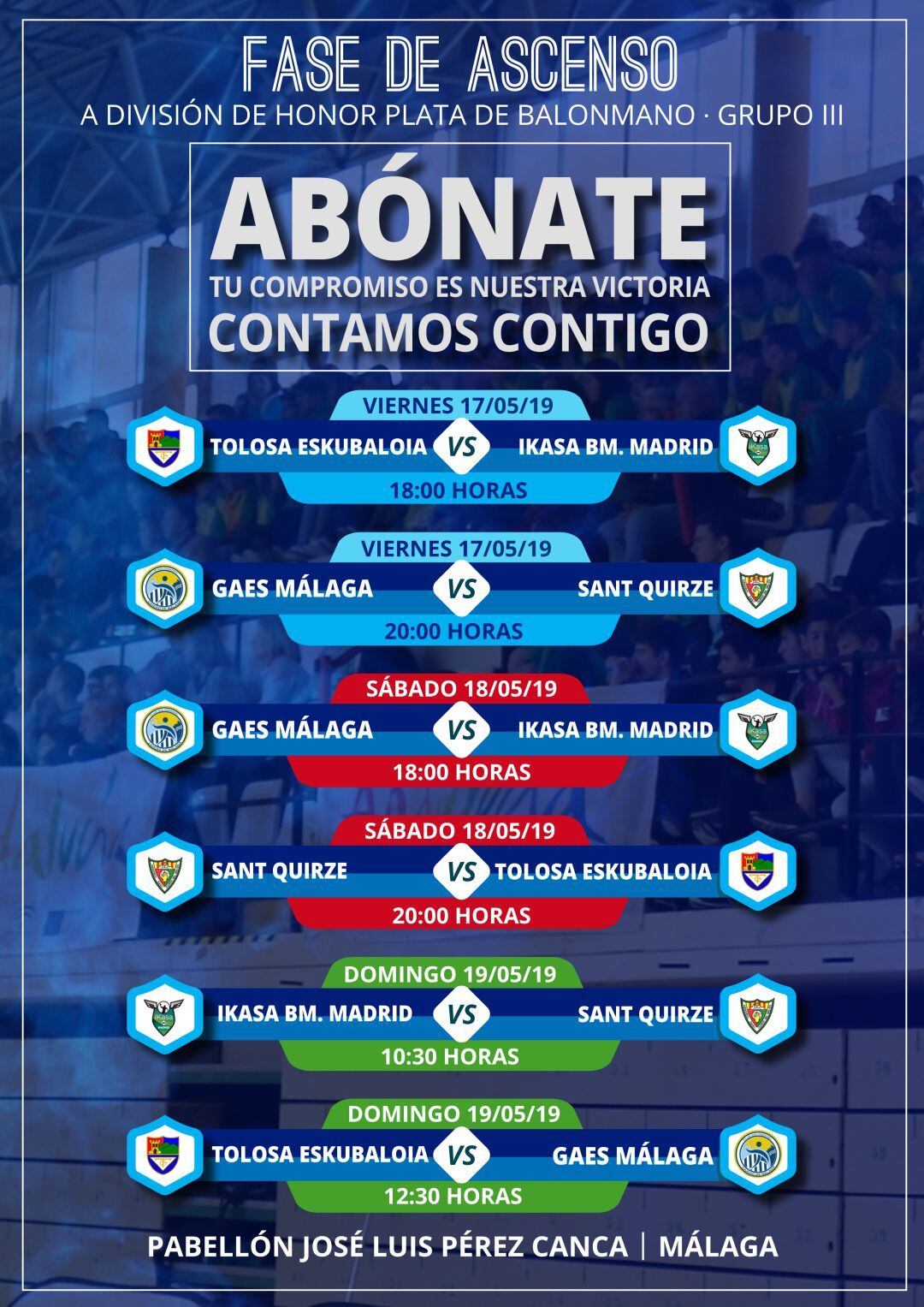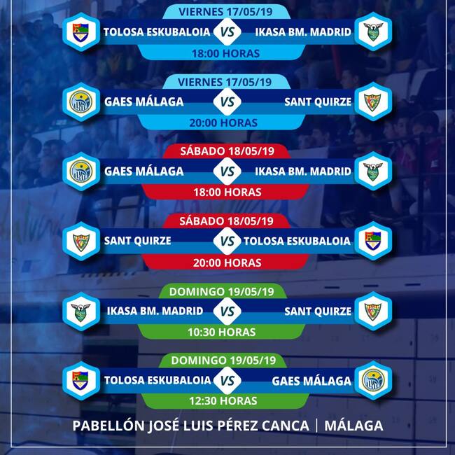 El partido se disputará el viernes 17 de mayo en el pabellón José Luis Pérez Canca de la Ciudad Deportiva de Carranque de Málaga, abriendo la jornada el encuentro entre el Tolosa y el Ikasa Madrid a las 18 horas