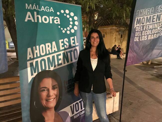 Desde la céntrica Plaza de la Merced, la candidata de Málaga Ahora, Rosa Galindo, sacó pecho de ser la única candidata "que nunca irá a un acto en coche oficial", "la única mujer que encabeza una lista para estas elecciones y la única que sabe que cuando acabe la legislatura volverá al mercado laboral, porque esta candidata entiende la política como un compromiso, no como una profesión".