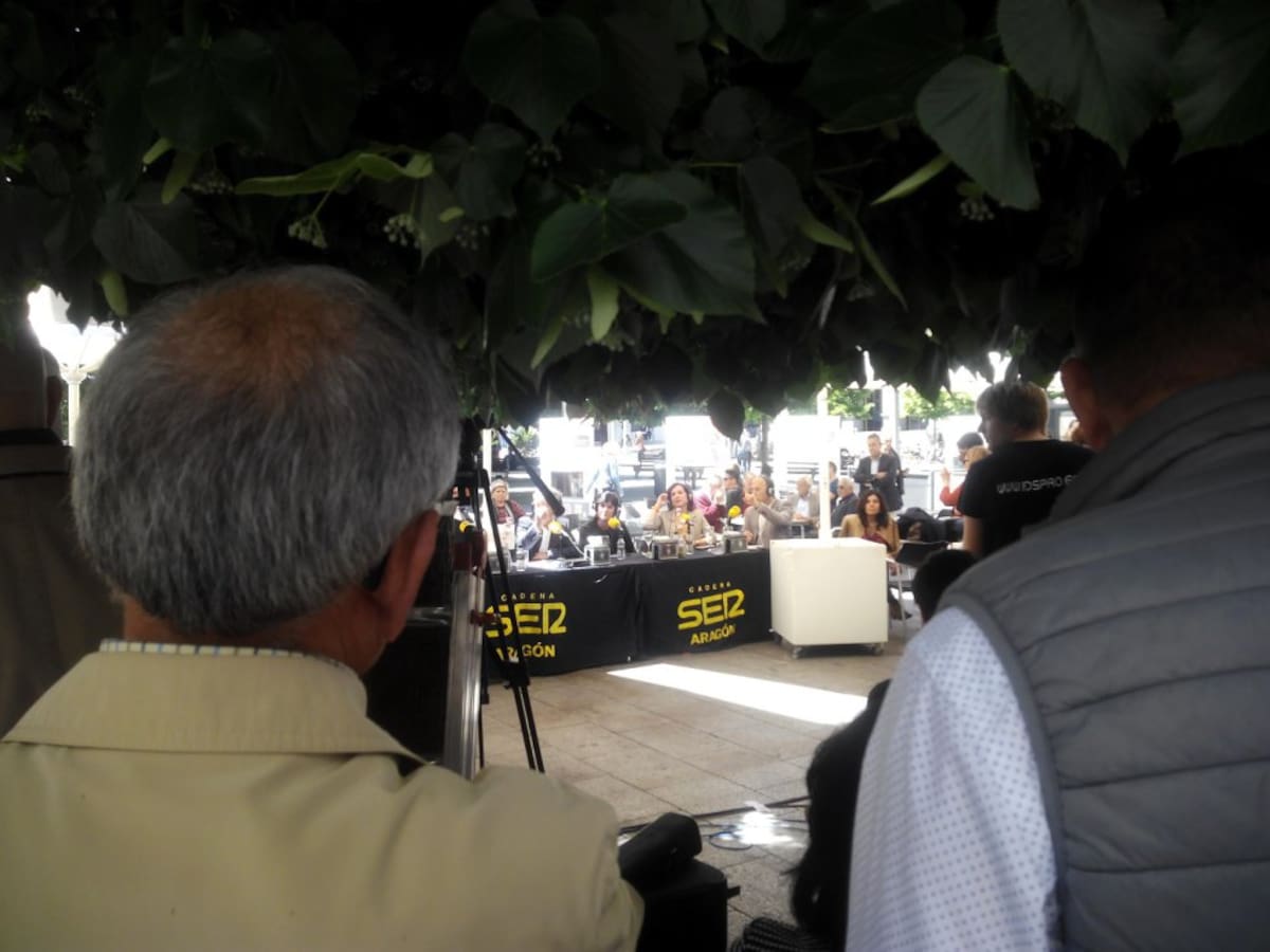 El encuentro con los candidatos se ha realizado en la terraza del Café Zaragozano, en la Plaza de España de Zaragoza