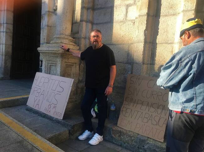 Apoyados por dos carteles de elaboración casera, recuerdan la situación en la que se encuentran muchas personas " sin casa, sin pensión, sin trabajo, renta básica" Desde el 15-M también le recuerdan al ayuntamiento de Ponferrada que vendieron la creación de huertos urbanos en esta legislatura "que concluye sin que exista ni uno sólo, ni siquiera la intención política de sacarlos adelante".