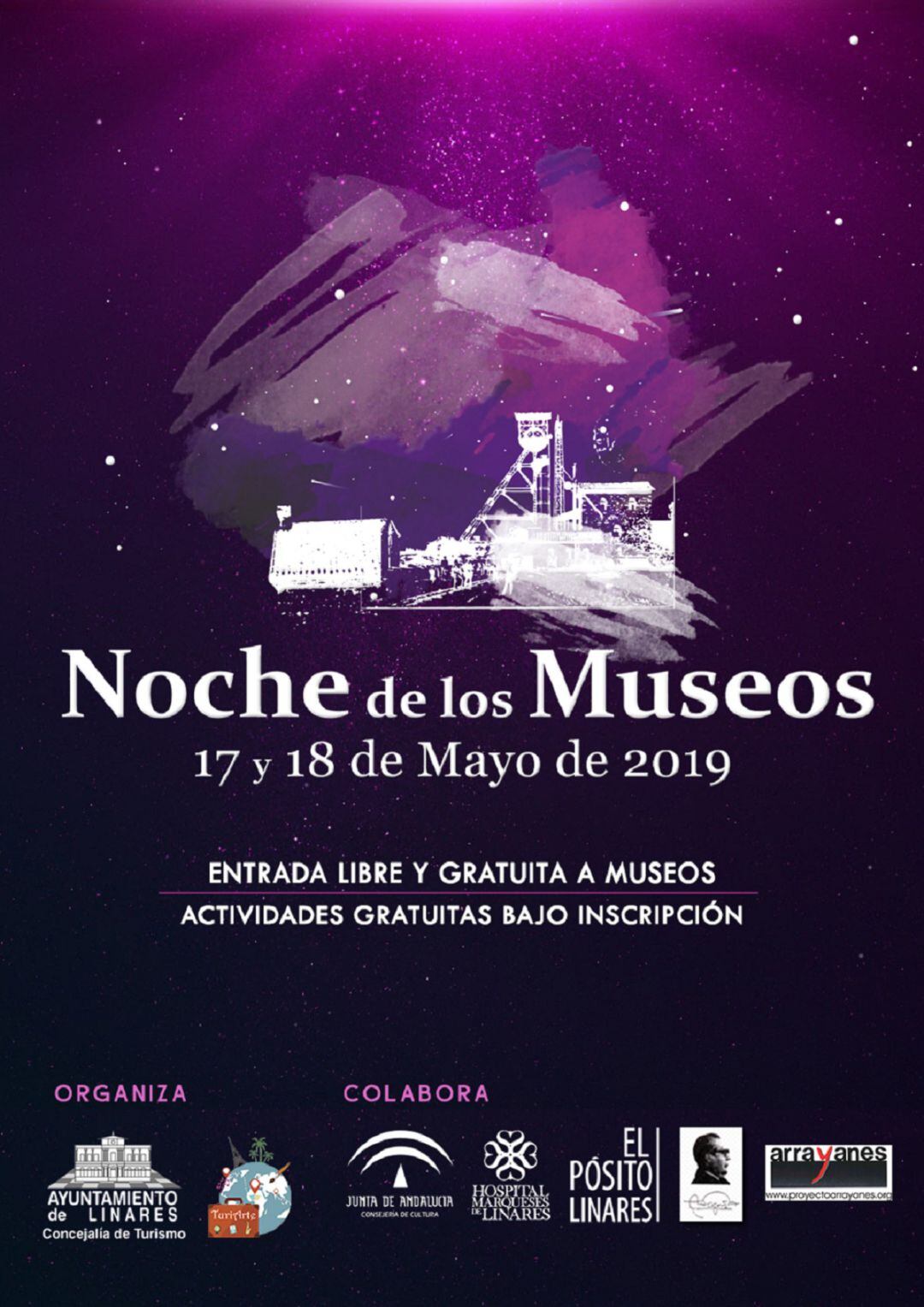 Este año la Concejalía de Turismo del Ayuntamiento de Linares organiza junto a la Asociación Turiarte la cuarta edición de La Noche de los Museos, que tendrá lugar este viernes 17 y sábado 18 de mayo. El evento ofrece la oportunidad de acercar los museos y la cultura al público y a la ciudadanía, haciéndoles conocer su patrimonio y cultura. Así se sorprenderá con una noche muy especial a todos los linarenses y visitantes que lleguen hasta la ciudad, ofreciéndoles diversas visitas guiadas y actividades culturales organizadas en los diferentes espacios museísticos.