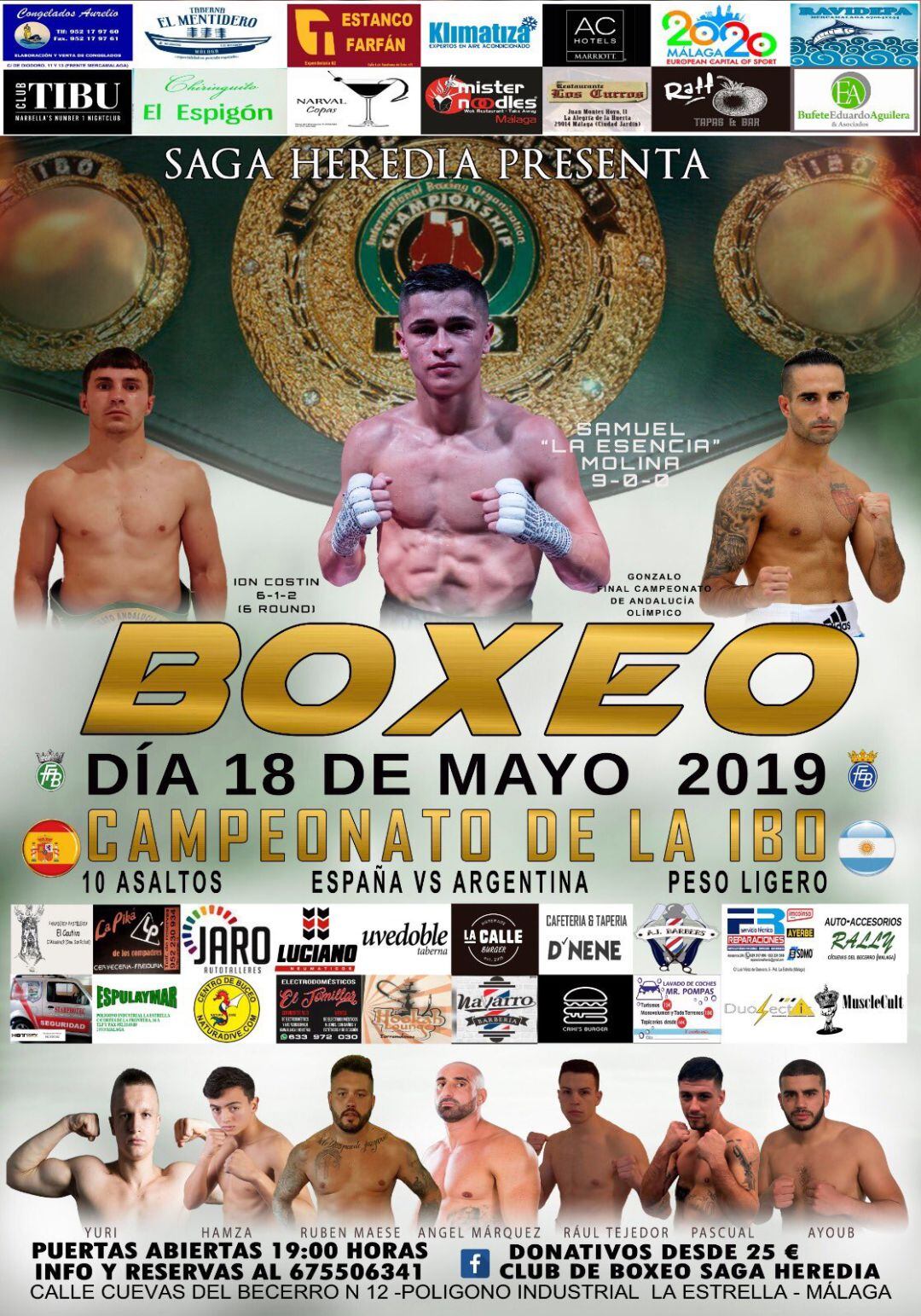 La velada comenzará a las 19 hroas en el club de boxeo Saga Heredia en el polígono industrial La Estrella de Málaga.