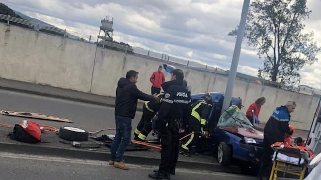 El conductor del turismo había conseguido salir por su propio pie del coche cuando llegaron los servicios de emergencia, que se lo encontraron tumbado en el suelo de la acera.