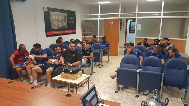 La plantilla sigue el sorteo en directo. / Algeciras CF