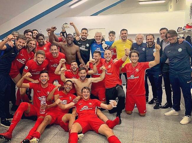 La plantilla y el presidente de la UD celebrando el triunfo en Melilla / UD Ibiza