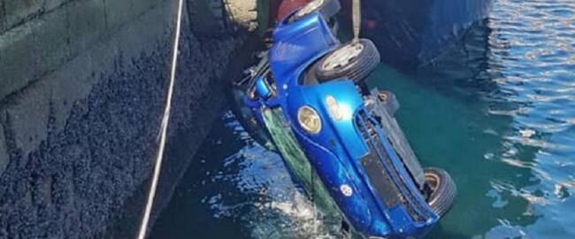Un coche cae al agua en el muelle pesquero de A Palloza
