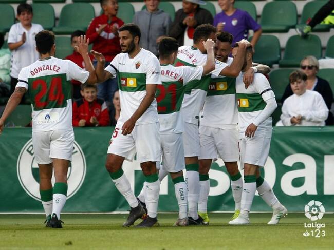 Los jugadores del Elche celebran un gol en el Martínez Valero / LaLiga 123