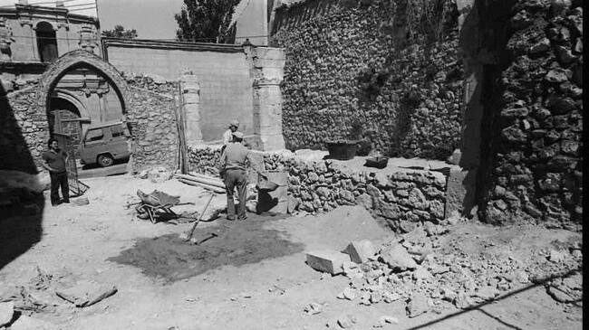 Obras de adecentamiento de las ruinas de San Pantaleón vistas desde la calle de San Pedro, 1980. / José Luis Pinós