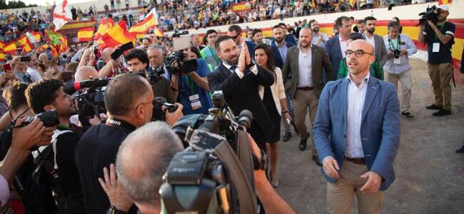 Abascal ha elegido la plaza de toros de Valdemoro para su primer acto después de su primer día en el Congreso de los Diputados / Vox
