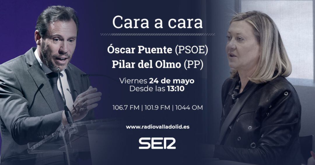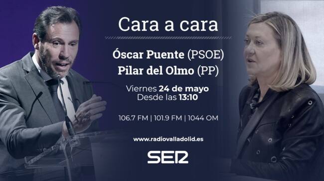 Los candidatos de PP y PSOE al Ayuntamiento de Valladolid, Pilar del Olmo y Óscar Puente, se enfrentan este viernes 24 de mayo, a partir de las 13:00 en un inédito debate cara a cara.