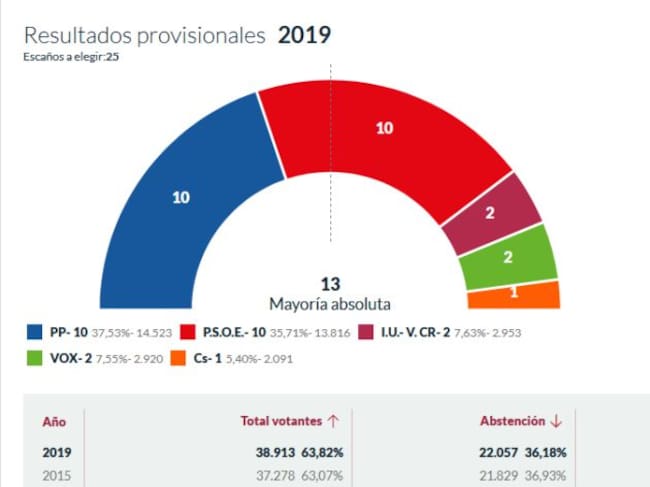 Con estos resultados, la corporación municipal del Ayuntamiento de Lorca quedaría compuesta así:
