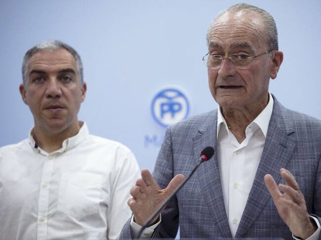 El alcalde en funciones de Málaga y candidato del PP a la reelección, Francisco de la Torre, acompañado por el portavoz del PP-A, Elías Bendodo / Jorge Zapata (EFE)