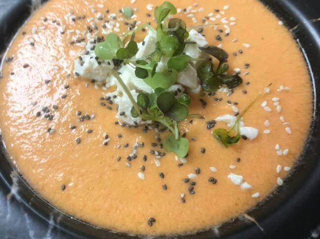 Gazpacho con tofu, chía y sésamo