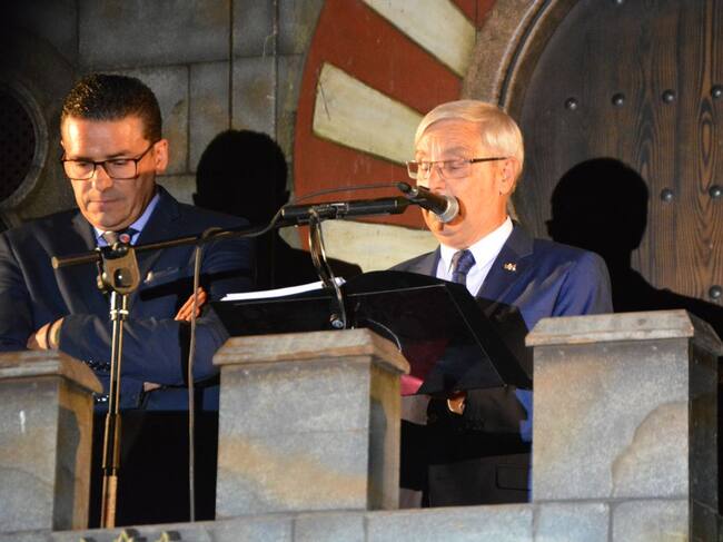 Una vez se ha iniciado el acto del pregón, los eldenses vitoreaban al pregonero y a los cargos festeros conformados por las capitanías de este 2019. Un pregón presentado por Pepa Blanes, jefa de la sección de cultura de la SER e hija del pregonero, quien ha aprovechado su momento para hacer memoria de los mejores momentos de las fiestas, aludiendo a los sentimientos y las alegrías que se viven durante todos los actos.
