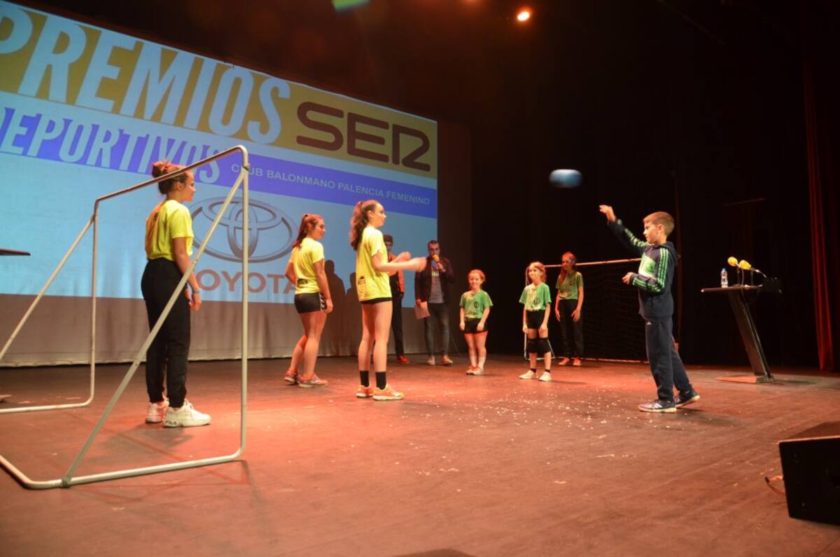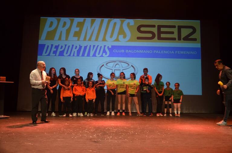 El Club Balonmano Palencia Femenino recogiendo su premio Ser Deportivos