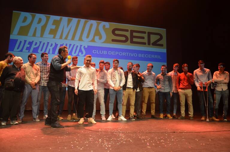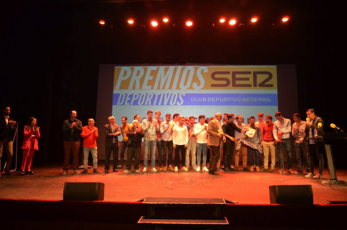 Los integrantes del Club Deportivo Becerril disfrutaron sobre el escenario durante la recogida de su premio