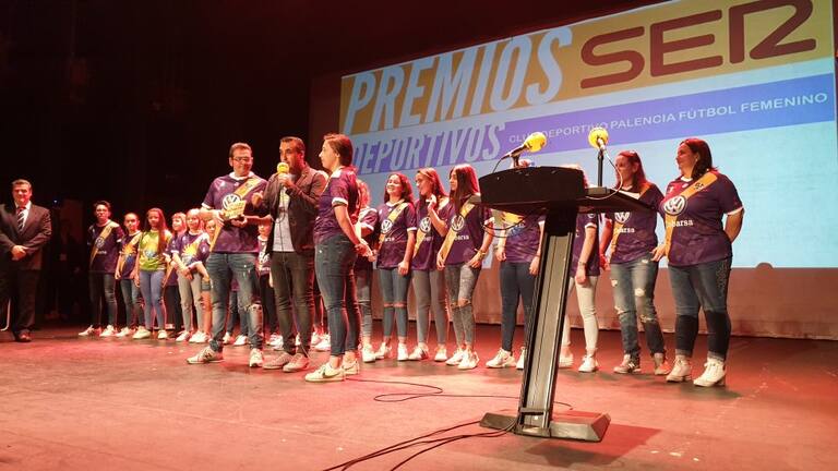 El CD Palencia Fútbol Femenino recogiendo su merecido premio Ser Deportivos