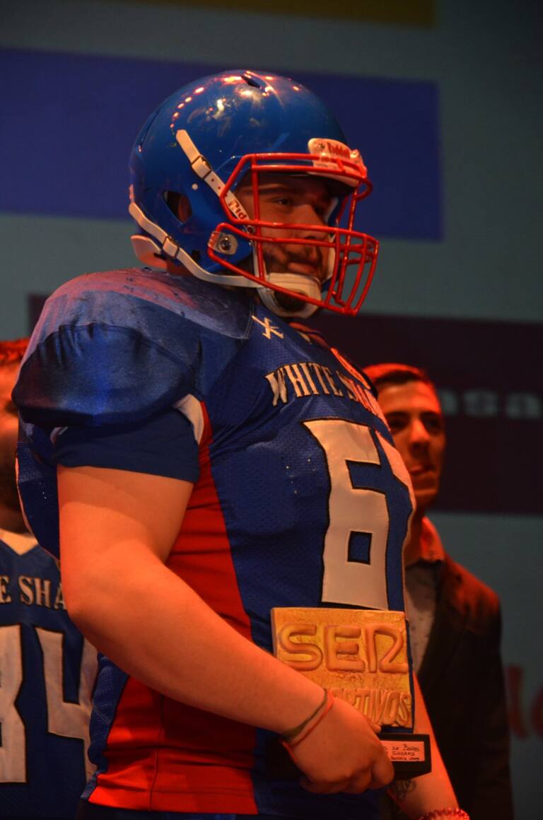 Pedro Rojo, presidente y jugador del Venta de Baños White Sharks, recogiendo el premio de su equipo