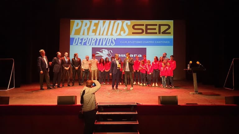 El Club de Atletismo Cuatro Cantones recibiendo su premio Ser Deportivos