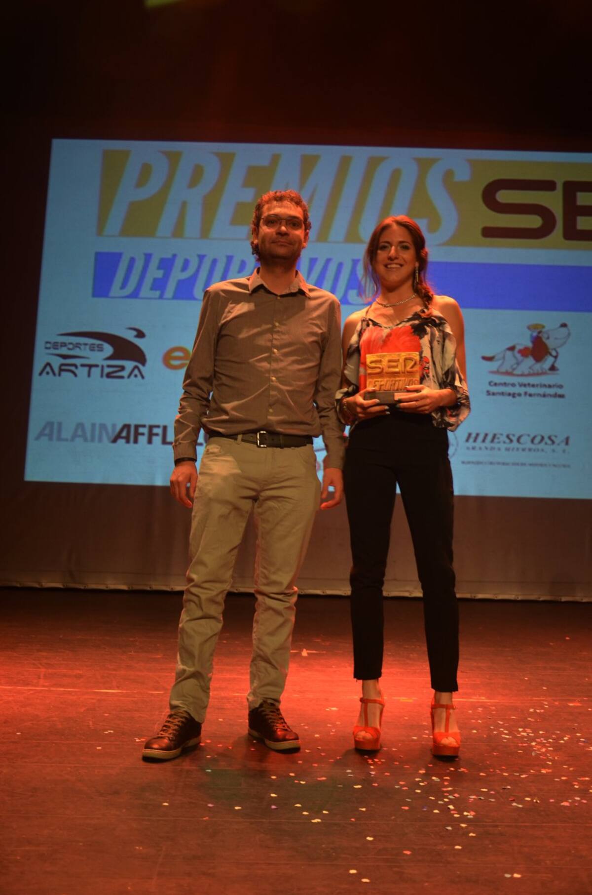 La atleta Carla Gallardo recogiendo su premio Ser Deportivos
