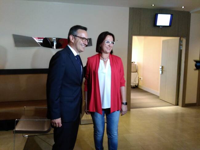 El líder socialista, Diego Conesa y la líder de C´s, Isabel Franco, minutos antes de la reunión que han mantenido ambas formaciones en Murcia de cara a la conformación de un posible pacto de gobernabilidad regional / Radio Murcia