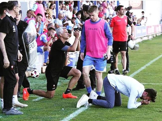 Rubén Albés celebra la salvación del Celta B en el play out / Twitter @RubenAlbes