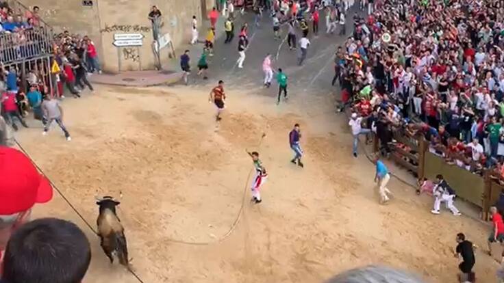 El burel, aunque conservaba parte de sus fuerzas, empezaba a mostrarse reservón, lo que podría traducirse en un mayor peligro para los corredores que le habían acompañado en casi la mitad del recorrido. Una decisión que para la mayoría de los participantes en el festejo resultó acertada.
