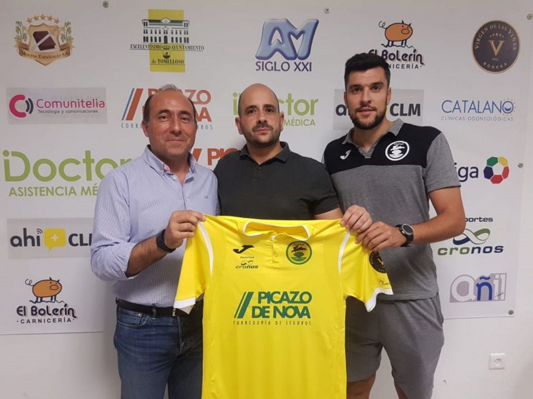 La primera piedra del nuevo proyecto ya está puesta. En medio de una gran expectación tuvo lugar la presentación del nuevo inquilino del banquillo tomellosero. La Junta Gestora ya avanzó hace días que el proyecto deportivo estaría íntimamente ligado a la ciudad, y con esta primera decisión demuestran que no van de farol. José María Lara y Luis Reinosa, dos de los tres miembros de la gestora, arroparon al nuevo entrenador auriverde en su puesta de largo.