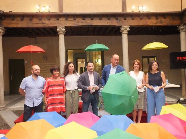 Instituciones participantes en FEMUKA y organizadores, durante la presentación del festival en el patio de columnas de la Diputación de Segovia / Radio Segovia