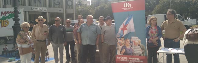 El colectivo de personas jubiladas y pensionistas de la CIG reclama cambios en las políticas de atención a la dependencia y a las personas mayores que garanticen el derecho a una vida digna. Con este motivo realizan una recogida de firmas en el Obelisco.