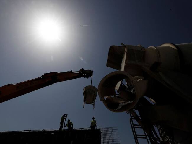 Un grupo de obreros trabajan en la construcción de una pared en una jornada donde las altas temperaturas que se registran en la comunidad foral, en Pamplona se superan los 42º / Jesús Diges (EFE)