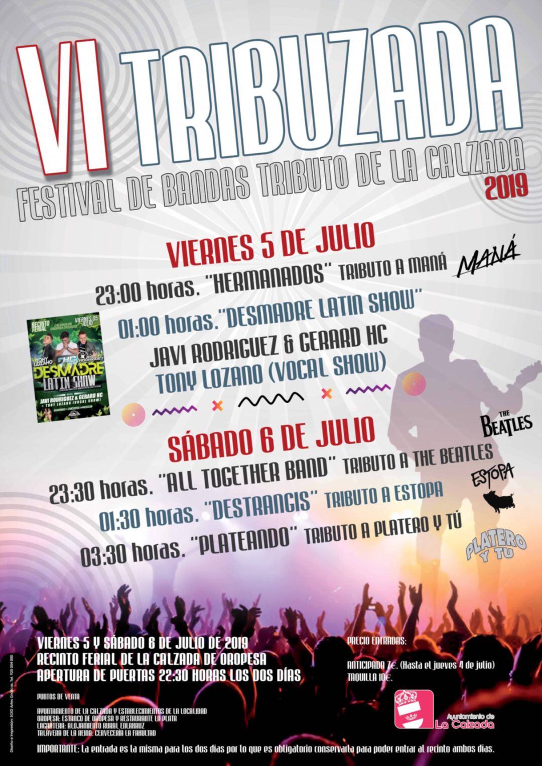 Este fin de semana se celebra en el recinto ferial de La Calzada de Oropesa, Tribuzada, la VI Edición del Festival de Bandas Tributo de La Calzada. Serán dos días para disfrutar de los mejores tributos nacionales y la mejor música actual.