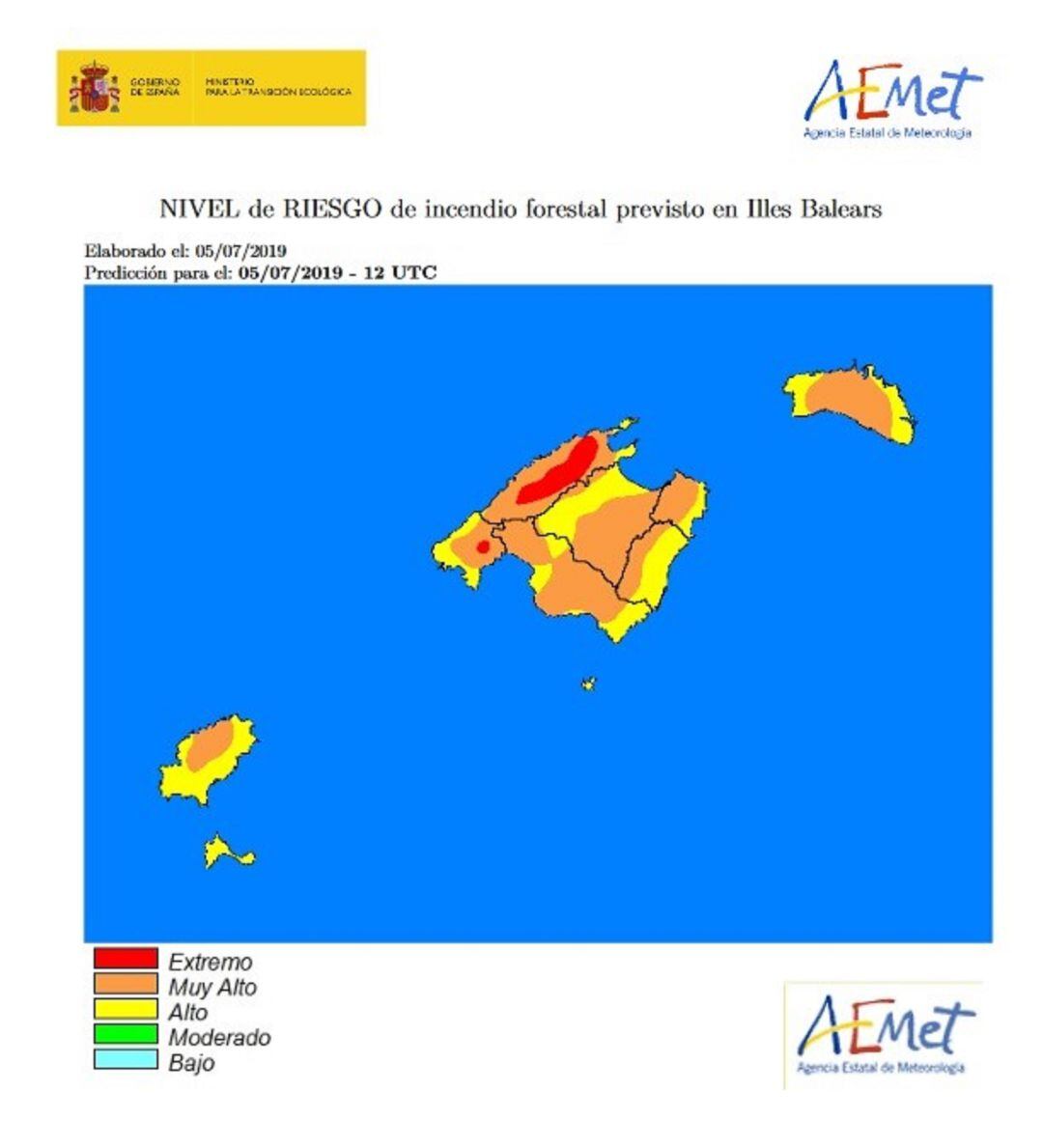 La Agencia Estatal de Meteorología (Aemet) ha señalado que Balears se encuentra este viernes en índice de riesgo de incendio forestal extremo o muy alto, según las zonas.
