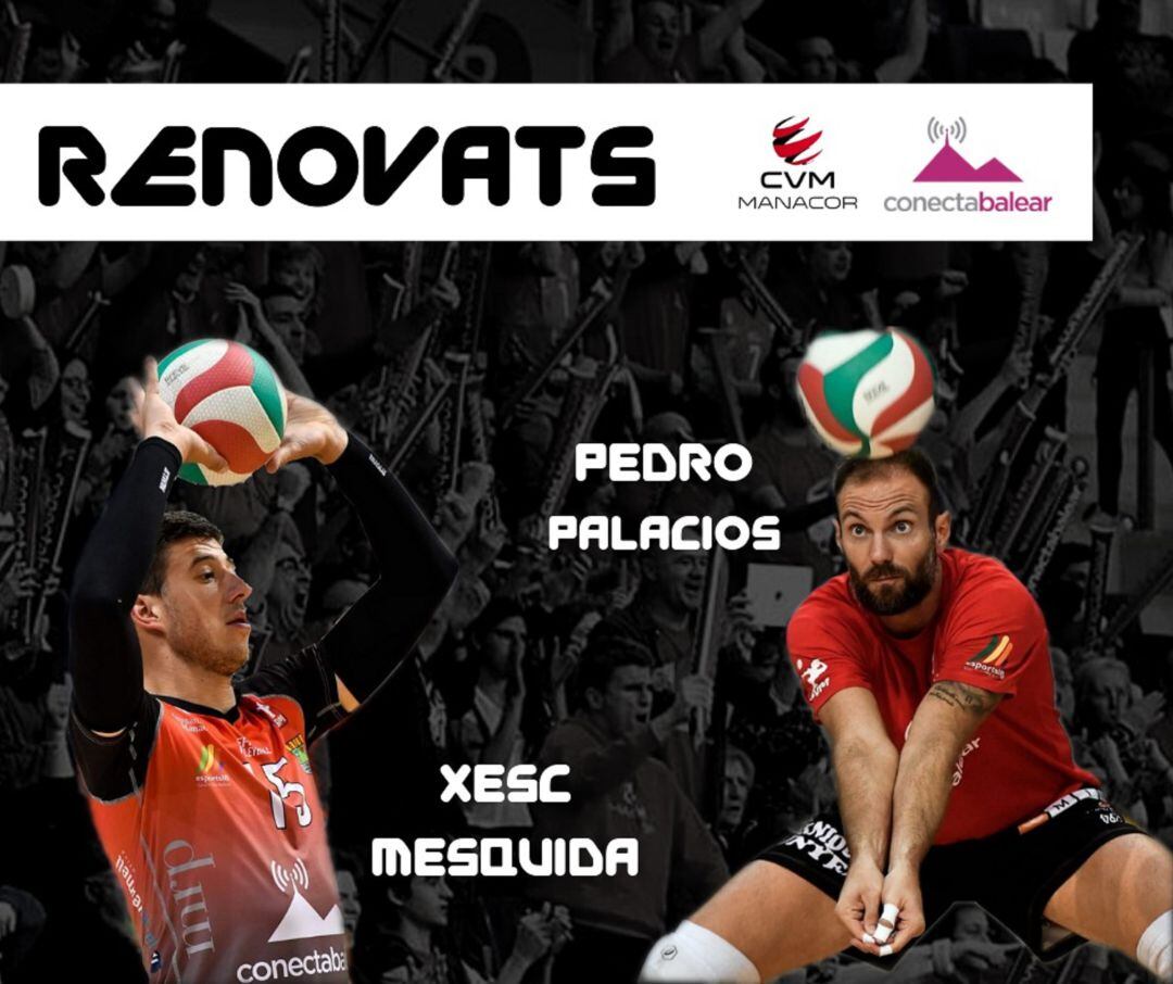 Se trata del receptor atacante Xesc Mesquida y el colocador Pedro Palacios. Mesquida, de 25 años y Palacios de 33, son algunos de los causantes del ascenso del equipo a Superliga 2 en el 2017 y en Superliga 1 el año pasado.