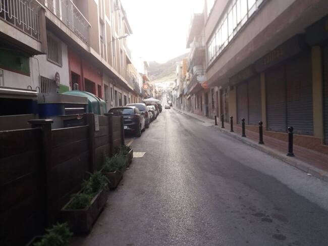 Es en la parte inferior, inicio desde el Paseo Primero de Mayo hasta Altozano, donde los vehículos se mantienen en el lado izquierdo, donde corresponde el aparcamiento en la segunda quincena de cada mes, no en estos días, como se puede observar en la foto.