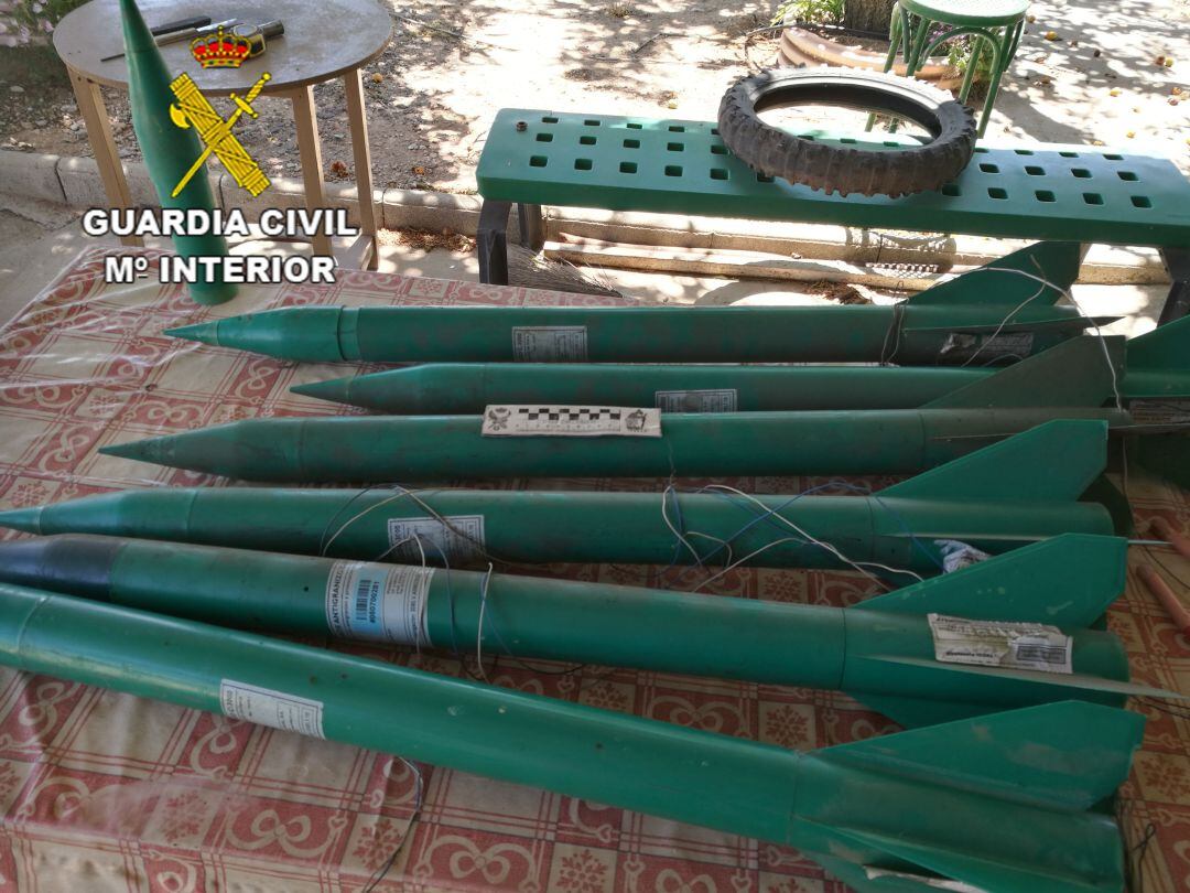 Según ha informado la Guardia Civil en un comunicado, inmediatamente se activó al Grupo Especialista en Desactivación de Explosivos (GEDEX), que se desplazaron hasta el lugar y verificaron que se trataba de siete cohetes utilizados para la dispersión de las tormentas de granizo, cuyo uso está prohibido y supone un riesgo tanto su almacenamiento como su utilización por personal no cualificado.