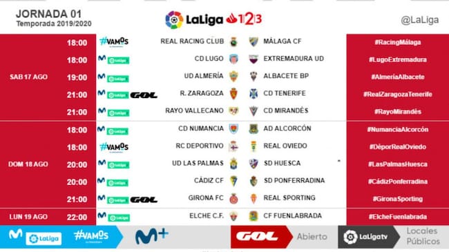 Cuadrante con los horarios de la jornada 1 en La Liga 123 / @LaLiga