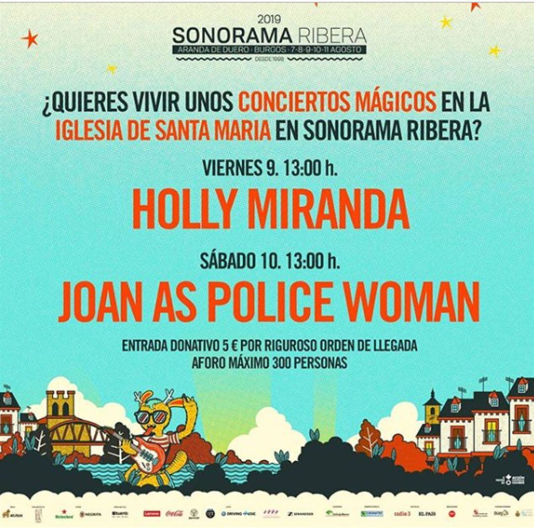 Sonorama Ribera amplía su oferta musical en los días de celebración y lo hace dentro de la iglesia de Santa María. El festival arandino ha organizado dos conciertos que podrán verse dentro de este mítico edificio religioso, los protagonistas de estos encuentros serán Holly Miranda el viernes 9 a la una del mediodía y Jon As Police Woman, el sábado 10 a la misma hora.