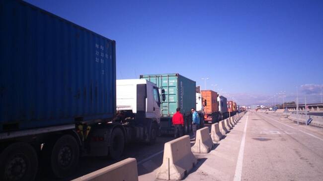 Transportistas en un acceso al Puerto de Valencia, en una imagen de archivo / Cadena SER